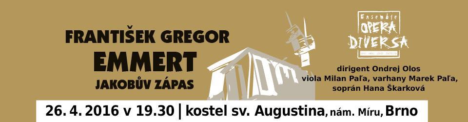 Ensemble Opera Diversa zve na chrámový koncert připomínající výročí úmrtí skladatele Františka Gregora Emmerta. Připomene ho v úterý (26. 4.) od 19.30 v brněnském kostele sv. Augustina. Pod taktovkou Ondreje Olose zazní Emmertova díla Jakobův zápas a v premiéře 25. symfonie v podání Ensemble Opera Diversa se sólisty Milanem Paľou, Markem Paľou a Hanou Škarkovou.