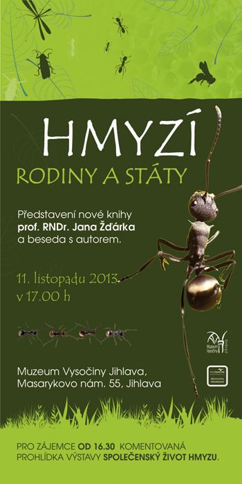 V Malovaném sále Muzea Vysočiny v Jihlavě se v pondělí (11. listopadu) můžete zastavit na besedu s RNDr. Janem Žďárkem zaměřenou na chování hmyzu. Setkání s titulem „Hmyzí rodiny a státy“ je připraveno na 17. hodinu.