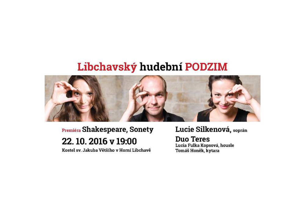 Program Libchavského hudebního podzimu nabízí v sobotu (22.10.) koncert s premiérou Shakespearových Sonetů. V kostele svatého Jakuba Většího v Horní Libchavě je od 19 hodin nabídnou sopranistka Lucie Silkenová a Duo Teres.