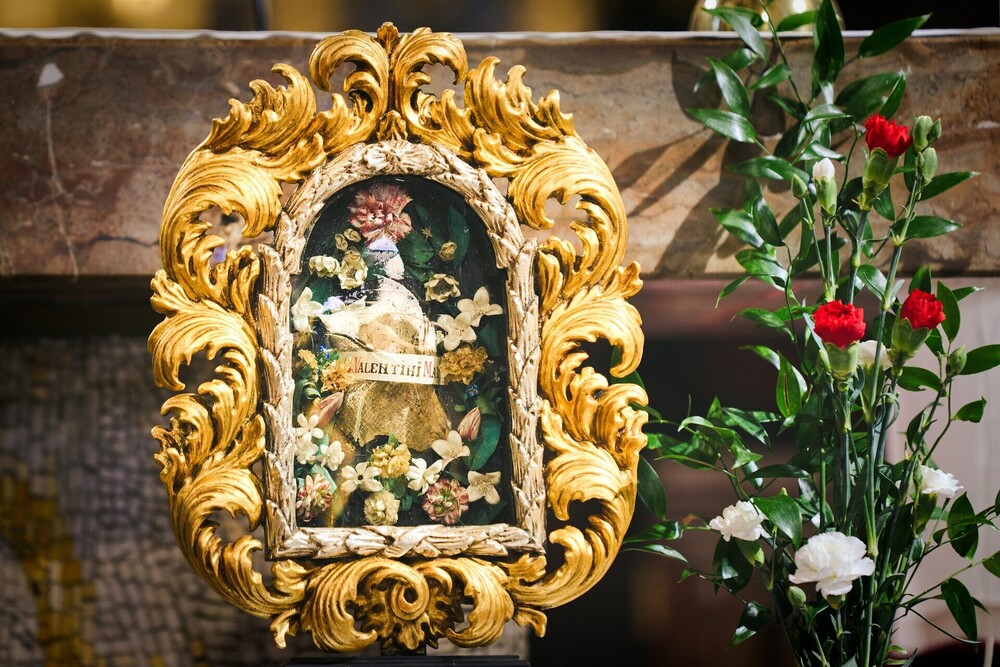 Na pouť ke sv. Valentýnu jste zváni také do baziliky sv. Petra a Pavla v Praze na Vyšehradě. Odpolední mši svaté s požehnáním snoubencům bude předcházet vystavení ostatků svatého Valentýna.